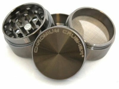 Chromium crusher has consistently been the most popular pick among users who want a high-quality fine grind at an affordable cost. The 63mm grinder consists of 4 parts— cap, grinding chamber, pollen screen, and pollen catch section.